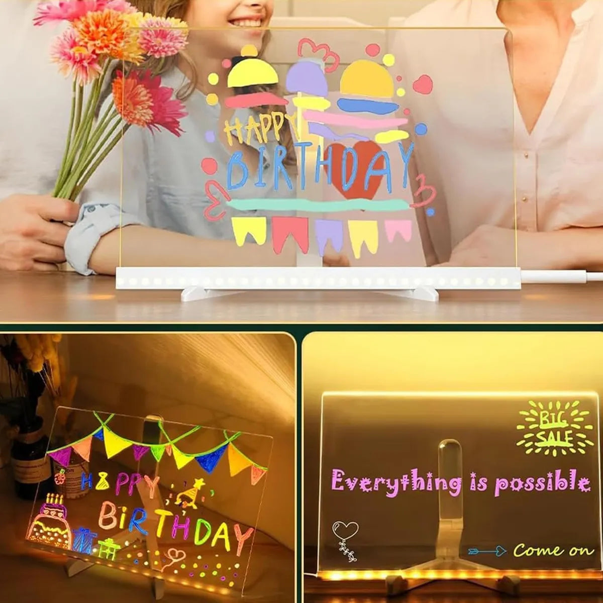 Transforma tus mensajes en una experiencia visual única con la increíble Lighting Board, la pizarra luminosa que está revolucionando hogares, oficinas y aulas.